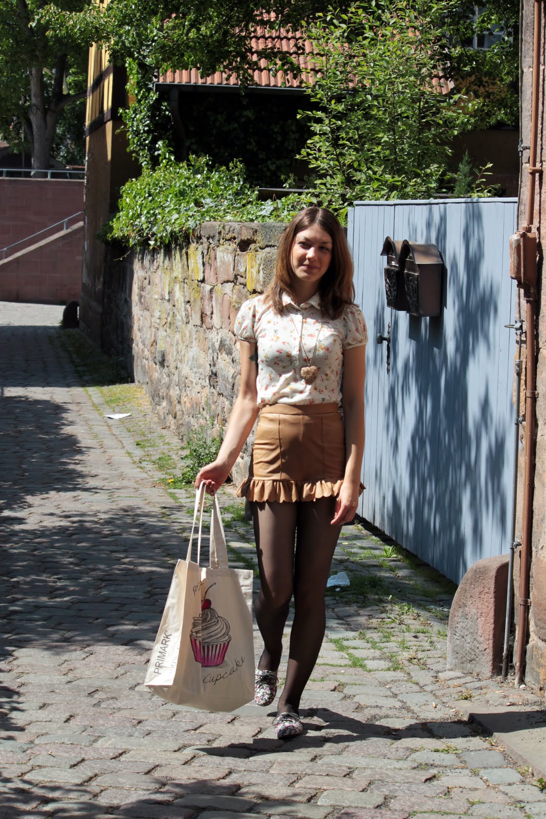 Sarah: Kette, Shirt, Stoffbeutel/Primark // Kunstledershorts/selbstgenäht // Schuhe/Pimkie